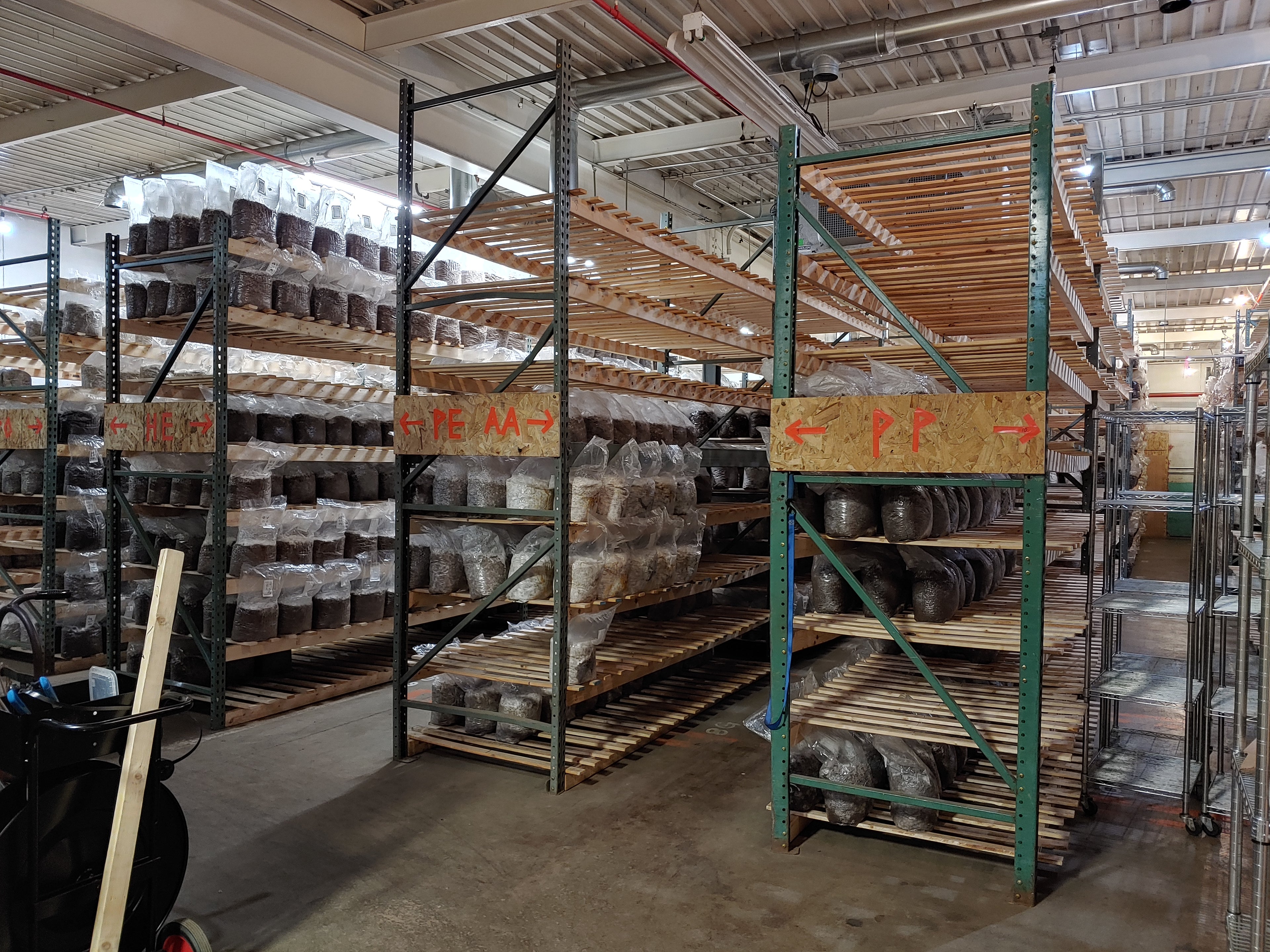 This is our incubation room here at Cap N' Stem, where we put the blocks of substrate after they have been inoculated with grain spawn.