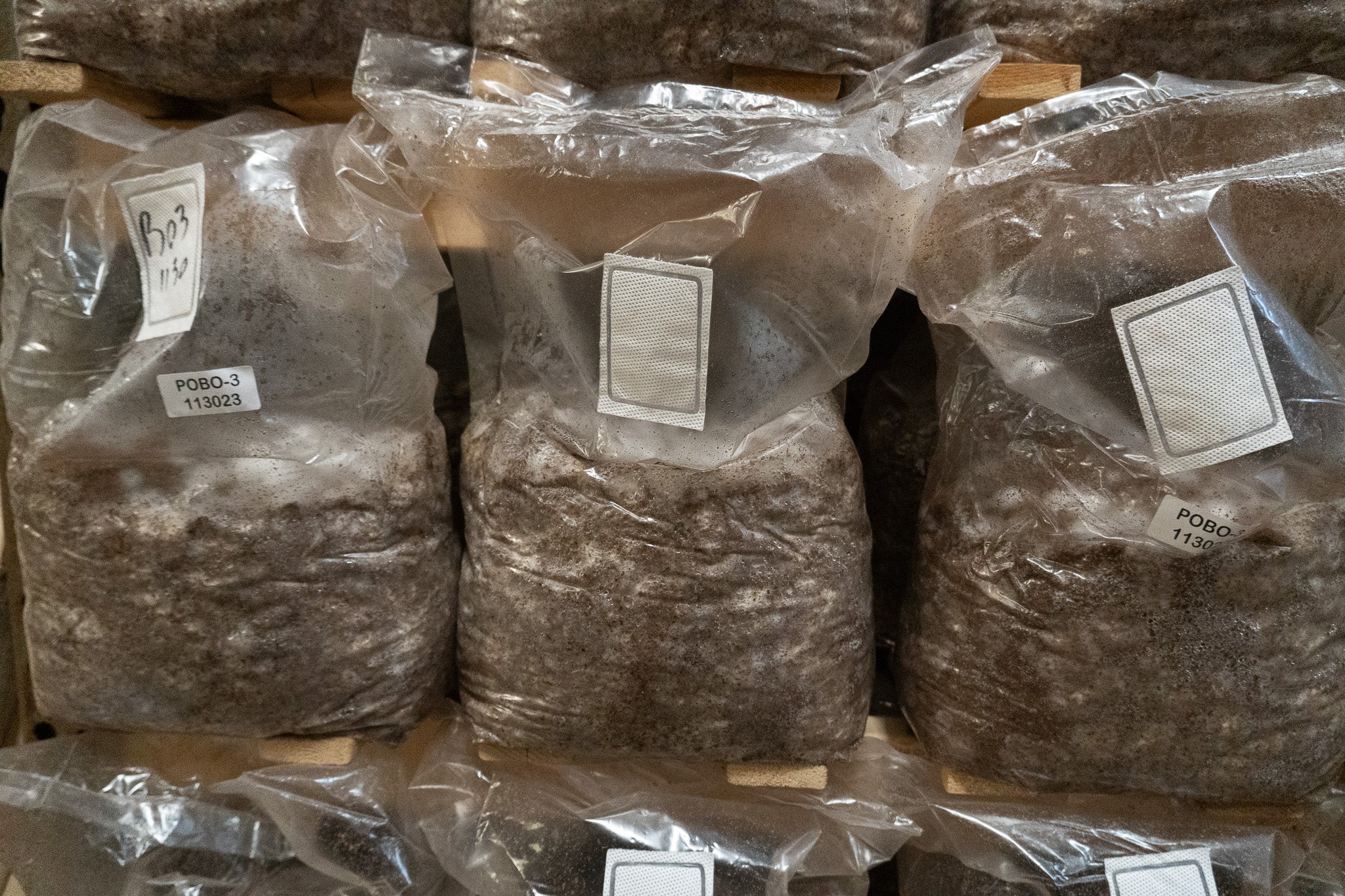 From sourcing, processing and mixing to bagging, ultra pasteurizing and inoculating, the whole substrate block production process is completed at our facility in central Maine. All of our substrate is incubated for the ideal amount of time in our hyper-controlled incubation rooms that balance temp, humidity and carbon dioxide levels for optimal mycelial growth. Fully colonized substrate blocks are preconditioned in refrigerated storage, packed and shipped in vented boxes under refrigerated conditions and sent direct to your facility through our network of LTL and Truckload carriers.
